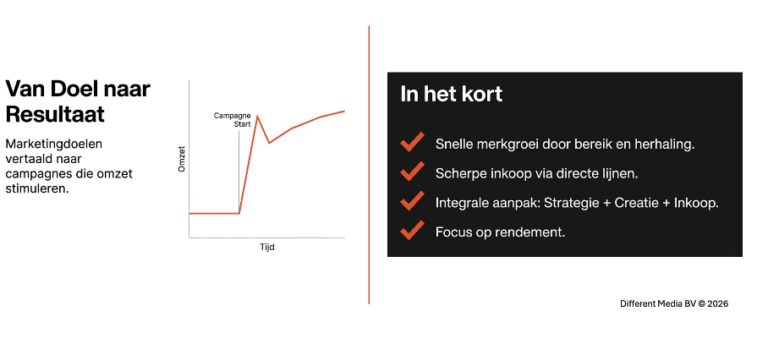 Bij Different Media BV ondersteunen wij, als onafhankelijk marketingadvies- en mediainkoopbureau, de echte ondernemers.
